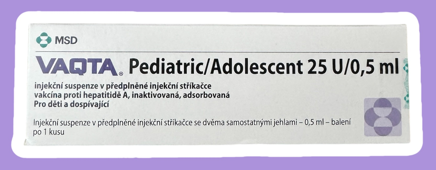 “Distribuce švédské, řecké a nizozemské šarže vakcíny Vaqta®junior/adolescent (Vaqta 25) a příbalové informace v českém jazyce byla schválena SÚKL. Čtěte prosím informace uvedené na www.sukl.cz.“